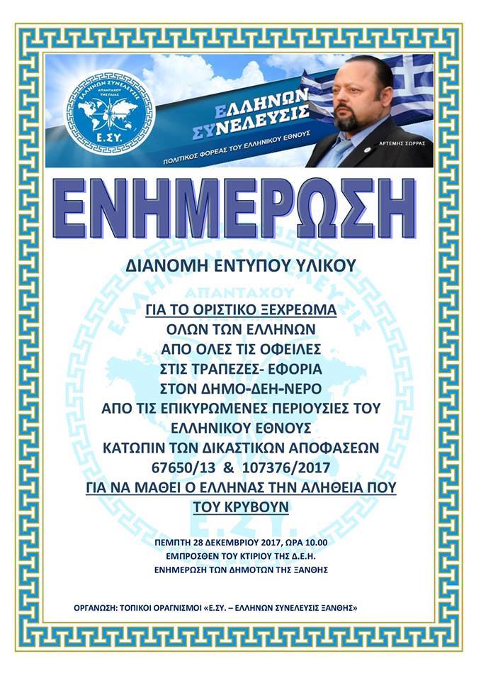28/12/2901/Ω:10.00 ΟΙ ΤΟΠΙΚΟΙ ΟΡΓΑΝΙΣΜΟΙ Ε.ΣΥ. ΞΑΝΘΗΣ ΘΑ ΔΙΑΝΕΙΜΟΥΝ ΕΝΤΥΠΟ ΥΛΙΚΟ ΕΜΠΡΟΣΘΕΝ ΤΟΥ ΚΤΙΡΙΟΥ ΤΗΣ Δ.Ε.Η. ΞΑΝΘΗΣ