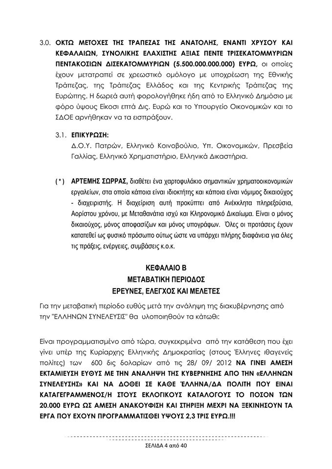 ΕΝΑΣ ΑΠΟ ΤΟΥΣ ΣΚΟΠΟΥΣ ΠΟΥ ΕΙΝΑΙ ΓΡΑΜΜΕΝΟΣ ΚΑΙ ΕΠΙΚΥΡΩΜΕΝΟΣ ΣΤΑ ΚΑΤΑΣΤΑΤΙΚΑ ΟΛΩΝ ΤΩΝ ΤΕΡΑΣΤΙΩΝ ΟΡΓΑΝΙΣΜΩΝ , “Ε.ΣΥ. ΕΛΛΗΝΩΝ ΣΥΝΕΛΕΥΣΙΣ” , ΤΟΥ ΟΡΓΑΝΙΣΜΟΥ “Ε5 ΕΛΕΥΣΙΣ ΕΝΩΜΕΝΩΝ ΕΛΕΦΘΕΡΩΝ ΕΝΕΡΓΩΝ ΕΛΛΗΝΩΝ” ΚΑΙ ΤΟΥ ΠΟΛΙΤΙΚΟΥ ΦΟΡΕΑ “ΕΛΛΗΝΩΝ ΣΥΝΕΛΕΥΣΙΣ” ΕΙΝΑΙ Η ΠΡΟΩΘΗΣΗ ΚΑΙ ΥΠΟΣΤΗΡΙΞΗ ΤΩΝ ΠΡΟΣΦΟΡΩΝ ΤΟΥ ΕΛΛΗΝ ΑΝΘΡΩΠΟΥ ΑΡΤΕΜΗ ΣΩΡΡΑ ΓΙΑ ΤΗΝ ΕΞΑΛΕΙΨΗ ΤΟΥ ΔΗΜΟΣΙΟΥ ΚΑΙ ΙΔΙΩΤΙΚΟΥ ΧΡΕΟΥΣ ΤΩΝ ΕΛΛΗΝΩΝ !!!