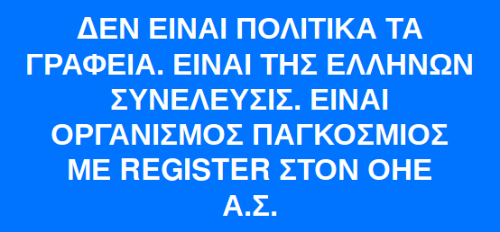 ΑΡΤΕΜΗΣ ΣΩΡΡΑΣ: ΔΕΝ ΕΙΝΑΙ ΠΟΛΙΤΙΚΑ ΤΑ ΓΡΑΦΕΙΑ. ΕΙΝΑΙ ΤΗΣ ΕΛΛΗΝΩΝ ΣΥΝΕΛΕΥΣΙΣ. ΕΙΝΑΙ ΟΡΓΑΝΙΣΜΟΣ ΠΑΓΚΟΣΜΙΟΣ ΜΕ REGISTER ΣΤΟΝ ΟΗΕ