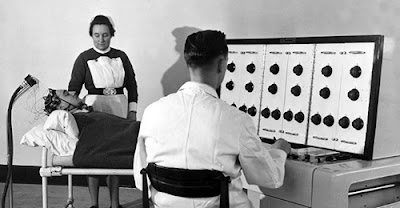Ο «δάσκαλος», από την άλλη, καθόταν μπροστά σε μια κονσόλα ηλεκτρικής γεννήτριας. Μπροστά του δέκα κουμπιά με ενδείξεις: «15 βολτ, 30 βολτ, 50 βολτ κλπ.» Το τελευταίο κουμπί έγραφε: «450 βολτ. Προσοχή! Κίνδυνος!»