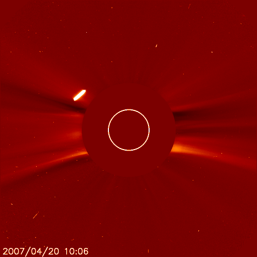 Η αντίστοιχη εικόνα ελήφθη την προηγούμενη μέρα από ένα από τα τηλεσκόπια LASCO.