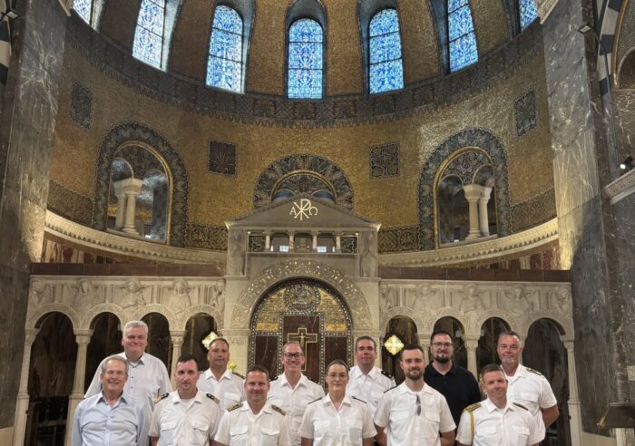 τη ➡ φρεγάτα «Έσσεν», με επικεφαλής τον νέο διοικητή της, Πλοίαρχο της Φρεγάτας Φίλιπ Μπλάου, επισκέφθηκε πρόσφατα τη λουτρόπολη Μπαντ Χόμπουργκ. Στο πλαίσιο της υφιστάμενης χορηγίας μεταξύ του κρατιδίου της Έσσης και του ομώνυμου πολεμικού πλοίου, η πόλη υποδέχτηκε τους επισκέπτες με ένα ποικίλο πρόγραμμα – από μια ξενάγηση στο κάστρο και την Εκκλησία του Σωτήρος μέχρι συζητήσεις με εκπροσώπους της πολιτικής και της κοινωνίας.