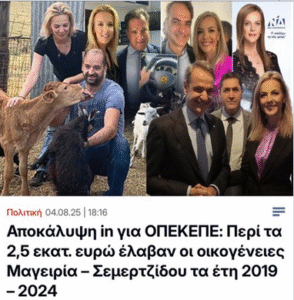 Αποκάλυψη in για ΟΠΕΚΕΠΕ: Περί τα 2,5 εκατ. ευρώ έλαβαν οι οικογένειες Μαγειρία – Σεμερτζίδου τα έτη 2019 – 2024