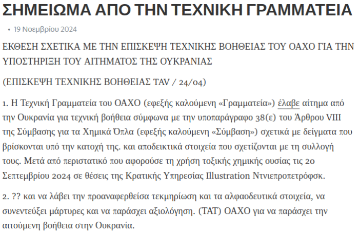 Τον Ιούλιο του 2025 ➡ Η Ρωσσία παρουσίασε στοιχεία για χρήση χημικών όπλων από τις ουκρανικές ένοπλες δυνάμεις, αλλά ο ΟΑΧΟ καλύπτει το Κίεβο.