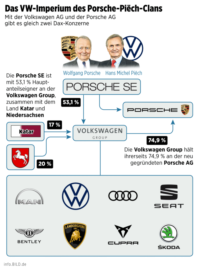 Οι απόγονοι του “θρυλικού” προγόνου της VW και της Porsche, Ferdinand Porsche, συνεχίζουν να διαμορφώνουν την τύχη μιας από τις μεγαλύτερες αυτοκινητοβιομηχανίες στον κόσμο. Το 2025, η τρίτη γενιά αποτελούνταν από πέντε μέλη και η τέταρτη από 33. Περισσότερα ΕΔΩ