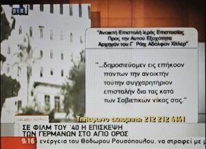 Προς την Αυτού Εξοχότητα τον Αρχικαγκελλάριον του ενδόξου Γερμανικού Κράτους Κύριον Αδόλφον Χίτλερ εις Βερολίνον.