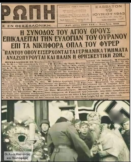 Οι Αγιορείτες μοναχοί το 1941 ζήτησαν από τον Χίτλερ να τους πάρει υπό την προσωπική του προστασία, τόσο ως μονάδα όσο και ανά μεμονωμένα μοναστήρια. Αυτός δέχτηκε και το πορτρέτο του τοποθετήθηκε ανάμεσα στους μεγάλους Αυτοκράτορες της Ρωσσίας και του Βυζαντίου στα μεγάλα μοναστήρια, έστειλαν και 2η επιστολή…