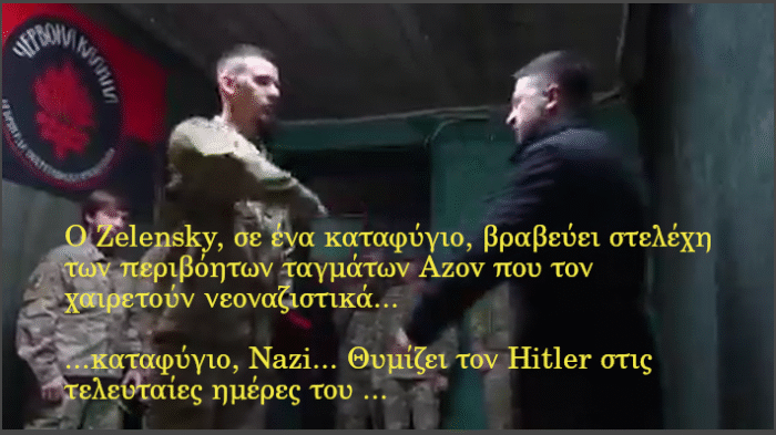 Avgerinos Thanassis [ Στις συναντήσεις με τους ξένους ηγέτες όταν μαζεύεται το χρήμα και τα όπλα, τα γέλια περισσεύουν, σχεδόν ξεκαρδίζονται. Εδώ, στο υπόγειο θωρακισμένο μπούνκερ, όπου ο Zelensky βραβεύει όπως αναφέρεται στελέχη των περιβόητων ταγμάτων Azov το κλίμα είναι βαρύ… ]