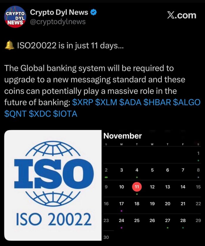 Το παγκόσμιο τραπεζικό σύστημα θα  αναβαθμιστεί σε μερικές μέρες σε  ISO τόπο: $XRP $XLM $ADA $HBAR $ALGO $QNT $XDC $IOTA