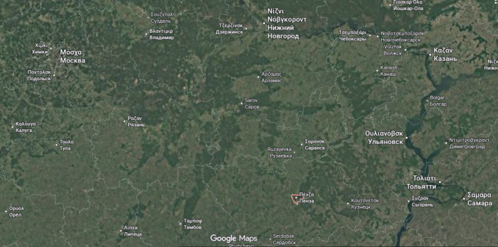 ➡ Όπως βλέπετε στον χάρτη, η Πένζα βρίσκεται ανατολικά της Μόσχας και δυτικά της Σαμάρα.